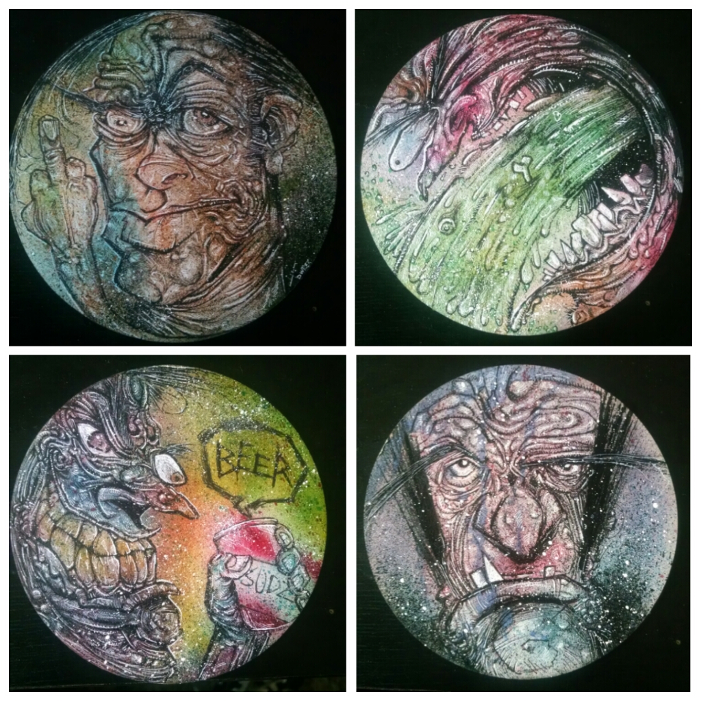 Got asked to submit some artwork for Annual Coaster show at the La Luz De Jesus gallery so I got drunk and made a mess on some coasters. You can see em in person along with a bunch of other great coaster artwork this Friday Sept. 4th at the La Luz De Jesus gallery .